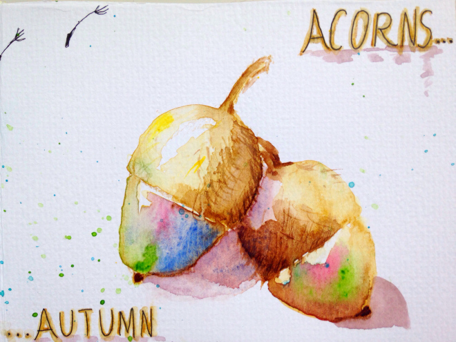 Again wet on wet for background, with some alcohol drops to spread paint pigments, once dried use ink pens to draw dandelions.