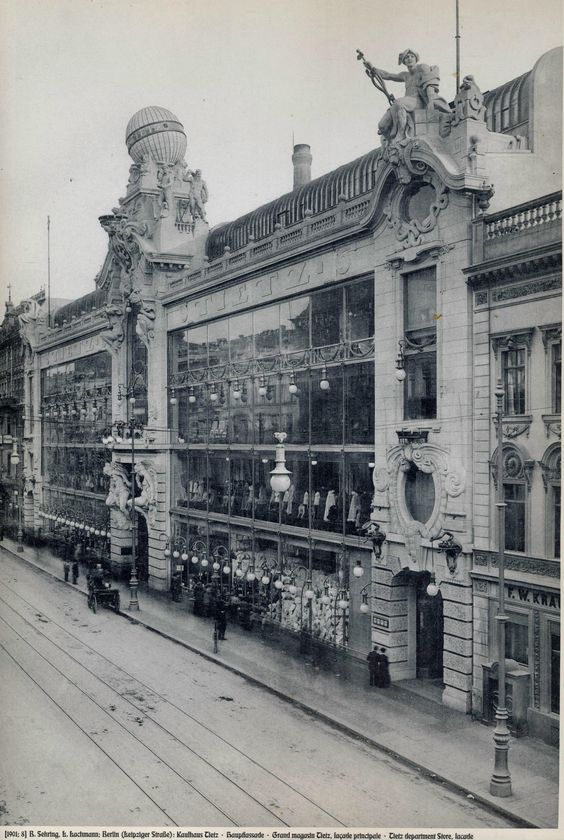 Designed by the architect bureau of Lachmann & Zauber, with the facade created by Bernhard Sehring, it was an oversized gauntlet thrown to its biggest competitor, Wertheim, whose largely successful and then biggest department store in Europe stood at the other end of the street, at Leipziger Platz.