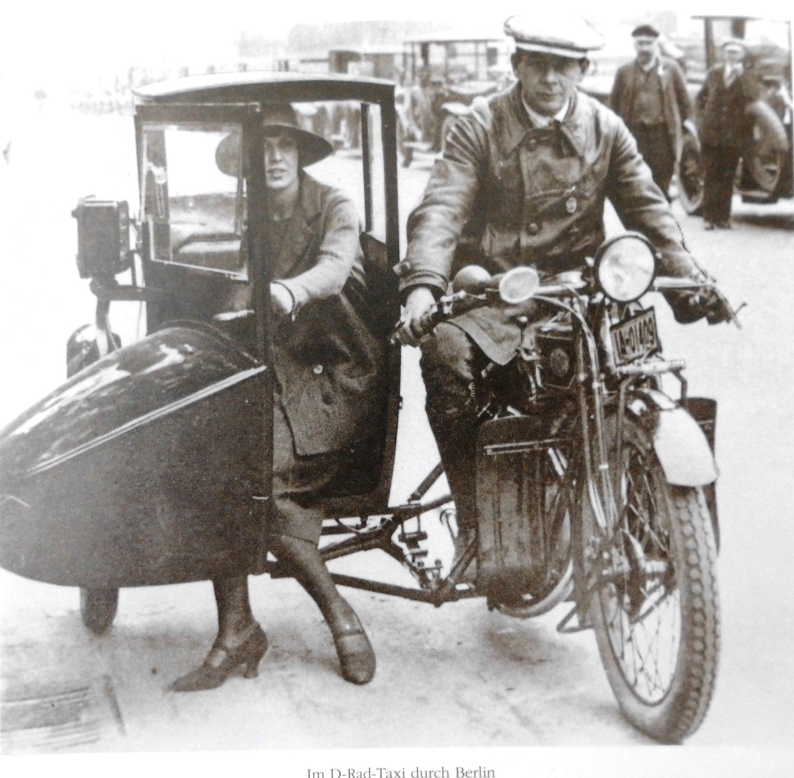 D-Rad Taxi and it passenger in 1928 Berlin (author and source of the image unknown).