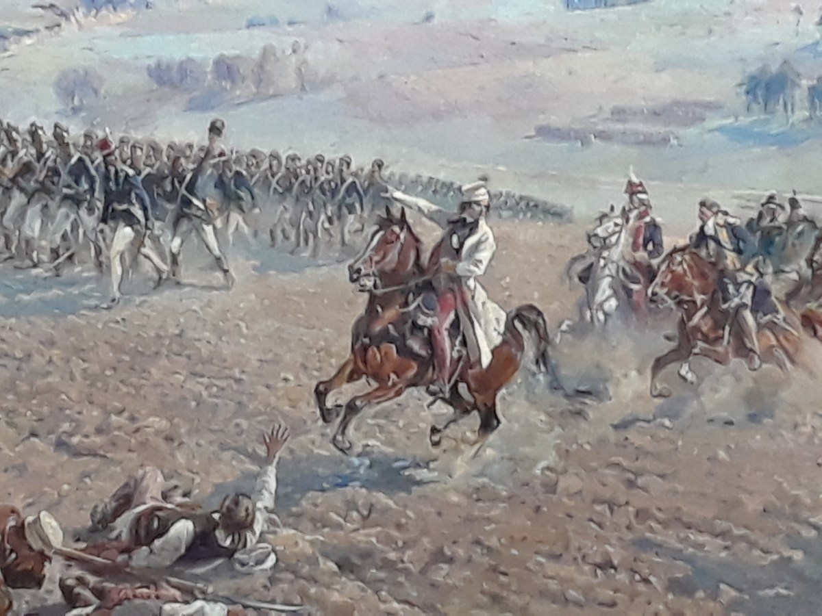 The painting is called the Panorama of Raclawice and depicts the battle of 4th Apr 1794 between Poland and Russia. The painting is 15 metres high and 115 metres long and is shown in the round. This was the most famous episode of the Kościuszko Insurrection and the man himself is shown on horseback in the above image.
