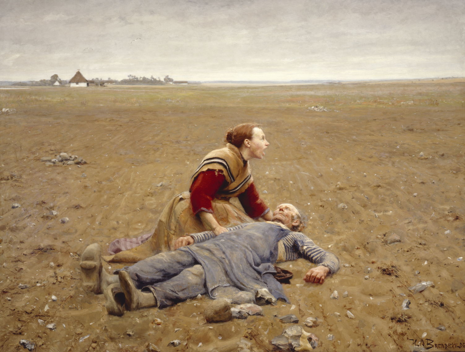 Hans Andersen Brendekilde (1857–1942), Worn Out (1889), oil on canvas, 207 x 270 cm, Fyns Kunstmuseum, Odense, Denmark. Wikimedia Commons.