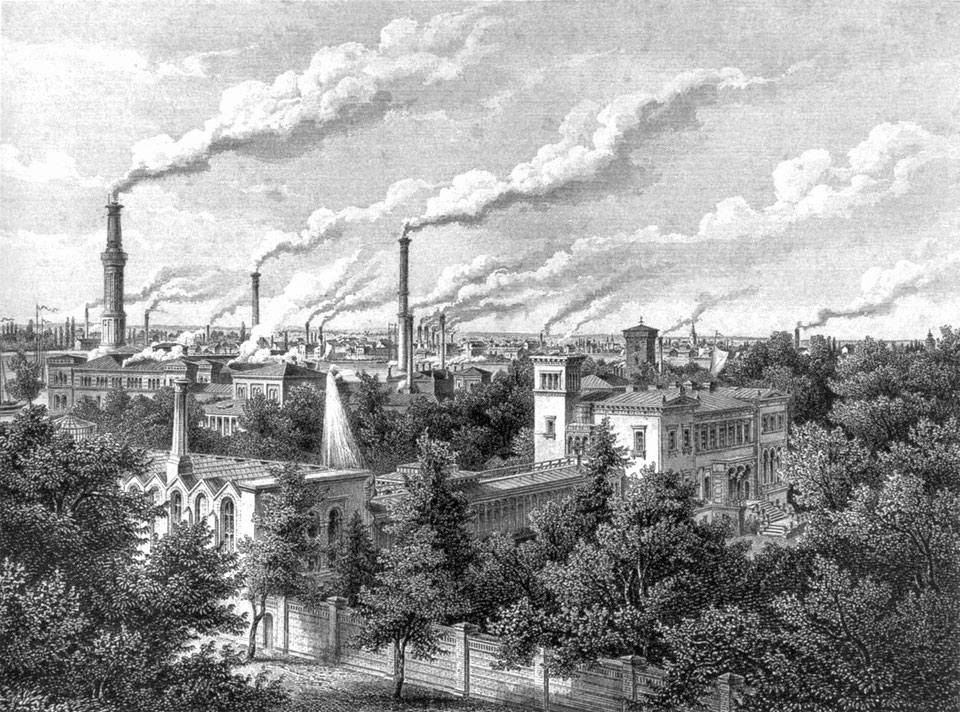 Both were surrounded by an elegant park designed by none other than Peter Joseph Lenné (the Berlin garden and park architect and father of, among many others, the Tiergarten). The villa, first out of three magnificent Borsig Villas, survived for less than a century: after the company’s rapid expansion it became necessary to find a bigger site and Borsig’s own property trust, Neu-Bellevue-Aktiengesellschaft, subdivided the land in Moabit into smaller plots, demolished the villa as well as other buildings and before building new streets, felled nearly all the trees in the old Lenné park.