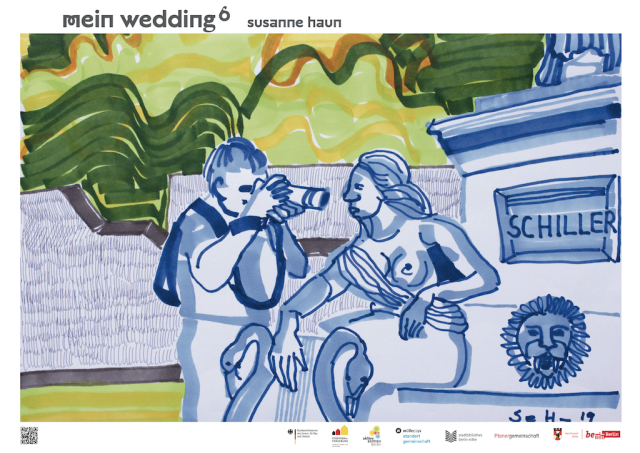 Dieses Jahr werden zwei meiner Zeichnungen zu sehen sein. Regelmäßige Leserinnen und Leser meines Blogs werden sich vielleicht erinnern, dass ich schon 2017 mit meiner Zeichnung Leopoldplatz bei Mein Wedding 5 (siehe hier) dabei war. Letztes Jahr saß ich selber in der Jury und reichte deshalb keine eigenen Bilder ein.