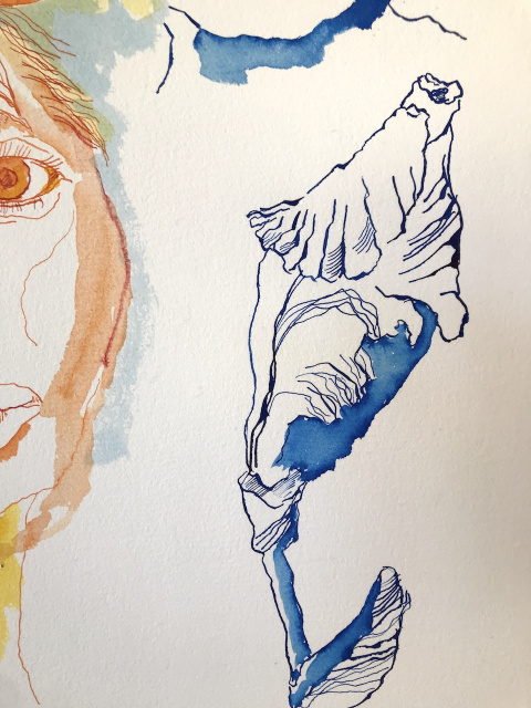 Detail aus meinen Gedanken, 76 x 56 cm, Tusche auf Hahnemuehle Leonardo Büttenpapier, Zeichnung von Susanne Haun (c) VG Bild-Kunst, Bonn 2020