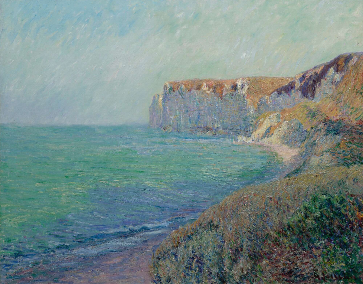 Born in Paris in 1865, Gustave Loiseau, like many of the Impressionist painters, found inspiration in the coast of Normandy. InFalaises de Saint-Jouin, Loiseau eliminates almost every sign of human presence, choosing instead to focus on nature itself.The composition is anchored by the dramatic cliffs on the right, and framed by a wide expanse of sea and sky.