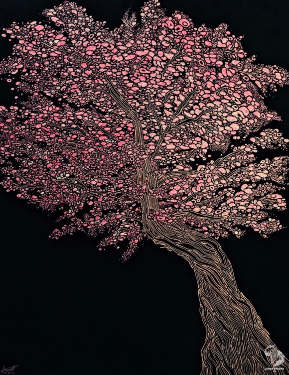 I felt like drawing something simple yet magical – the cherry blossoms as a spectacle of fleeting beauty and memory. It’s all about cherishing those little precious moments in life. This piece is inspired by Basho’s haiku, and hanami (flower viewing).