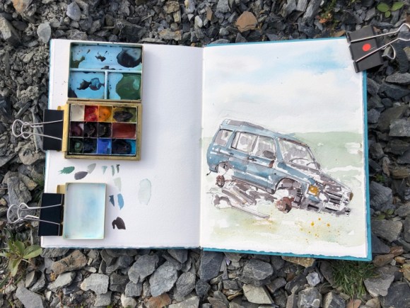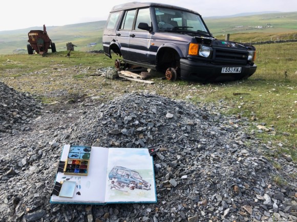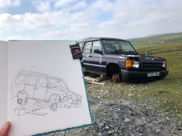 Abandoned cars are a feature of the landscape in Shetland. This one is in the initial stages of decay.