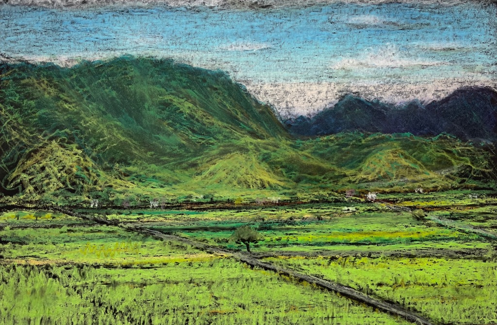 This was my second rice field drawing and it’s another impression of the Chihshang area and famous Mr. Brown Boulevard drawn from a different viewpoint to the first. It is a very beautiful, relaxing area and you can see the flowing rice fields stretching out in front of the distant farmhouses and mountains.
