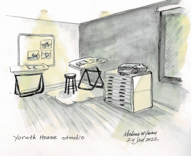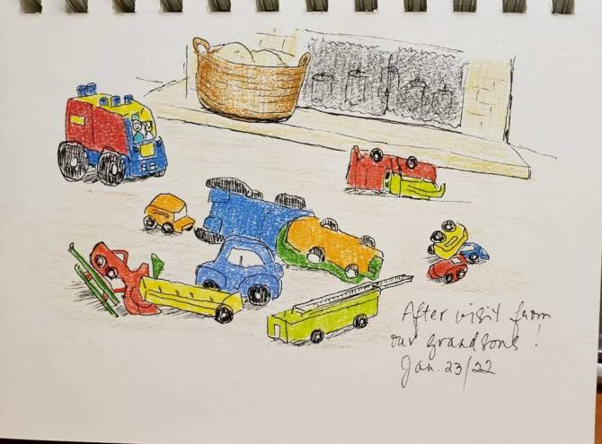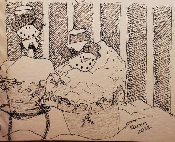 Our first sketching theme of 2022 was “Home”, and with the crazy winter weather and the crazy continuing pandemic, home is a good sketching venue.