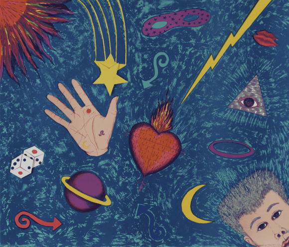 3. Mystic Sky with Self-Portrait, 1992 / Color offset lithograph and collage