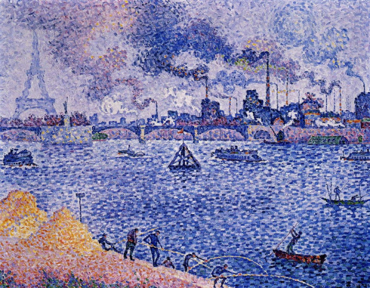 Just before the end of 1895, Siegfried Bing opened his gallery l’Art Nouveau in Paris. Its first exhibition included paintings by Cross, Van Rysselberghe and Paul Signac (1863-1935). In the New Year, Signac made his annual visit to Brussels, after which he and Van Rysselberghe toured the Netherlands together. In the Spring, it was time once again for the Salon des Indépendants, followed by the summer spent at Saint-Tropez, with the Van Rysselberghes as guests. Signac started preliminary work for The Demolisher (1897-9, see later) by way of a lithograph, which was published in an anarchist review.