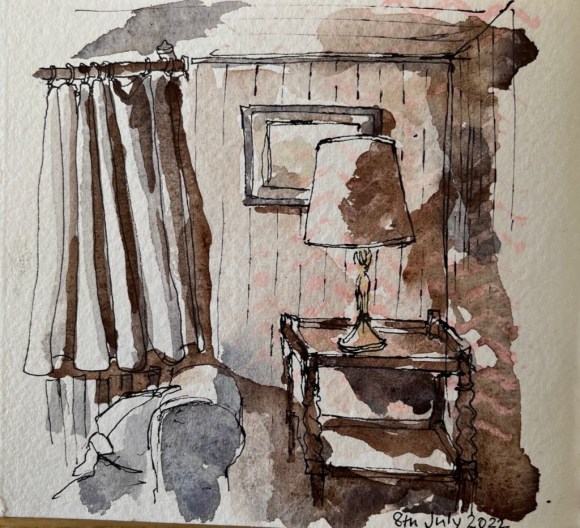 Categories Uncategorized Shetland 2022 – Burrastow Post author By penwithlit Post date August 14, 2022 No Comments on Shetland 2022 – Burrastow Love these interiors- very cosy and gemutlich! Jane Sketching Here is a drawing I made after breakfast: After Breakfast, Burrastow, 9th July 2022 I drew some pictures indoors: Burrastow – interiors, July 2022 A glass of wine: A glass of wine – 12 July 2022 An evening on the terrace…. An evening on the terrace, Burrastow, July 2022 View original postShare this: Click to print (Opens in new window) Print Click to email a link to a friend (Opens in new window) Email More Click to share on Facebook (Opens in new window) Facebook Click to share on X (Opens in new window) X Click to share on LinkedIn (Opens in new window) LinkedIn Click to share on Tumblr (Opens in new window) Tumblr Click to share on Pinterest (Opens in new window) Pinterest Like Loading... Related By penwithlit Freelance writer and radio presenter View Archive → ← ‘Enter the Dragon’ by John Keane, in Australian Foreign Affairs #11: The March of Autocracy, Australia’s Fateful Choices, edited by Jonathan Pearlman → From horseback to aircraft: painting the revolution in transport 2 Leave a comment Cancel reply Δ This site uses Akismet to reduce spam. Learn how your comment data is processed.