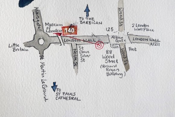 Earlier this month, I made a quick sketch of Bastion House, from London Wall.