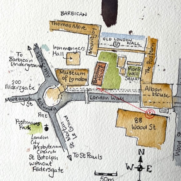 Here’s a map. The building on the left of my drawing is 200 Aldersgate, a huge office block.