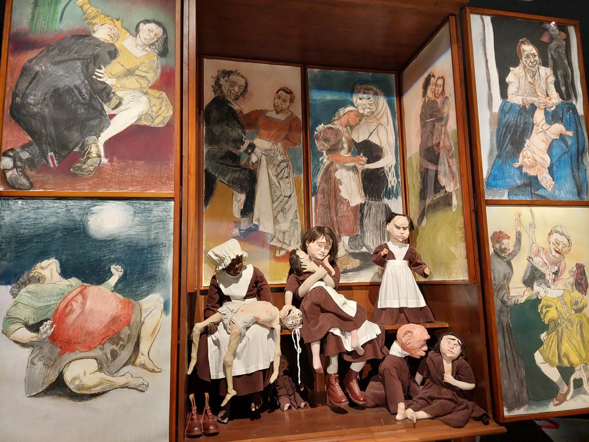 One of those discussed was renowned Portuguese artist Paula Rego (1935-2022), an artist known for her feminist and political stance, along with skewed references to fairy tales, nursery rhymes and Portuguese fables, reminiscent of a painterly Angela Carter. Other interests and influences include traditionally female crafts such as embroidery and dollmaking (subtly subverted), Jungian psychology and surrealism.