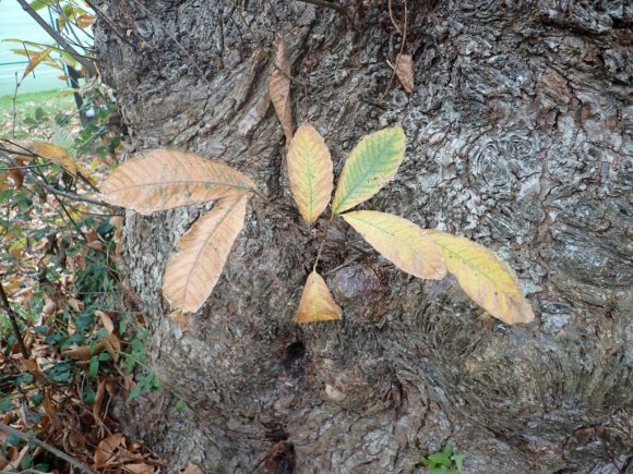The colour of the chestnut leaves on the ground is – well, a rich chestnut.