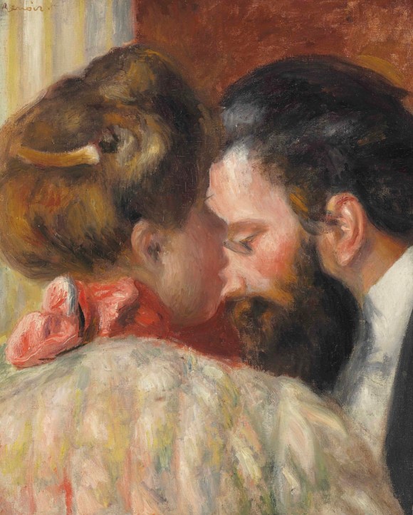“Painted in 1897, Confidence captures a couple in a private moment of conversation, the woman’s lips slightly parted as she leans in to speak, the man’s head lowered in a posture of concentration. The intimacy of the scene is emphasized by the extremely close vantage point, with both heads abruptly cropped by the edges of the canvas. Renoir’s focus is on the figures’ overlapping profiles, which interlock like the pieces of a jigsaw puzzle. The dialogue between their forms is heightened by the light that enters from the direction of the viewer, reflecting off the side of the man’s face while casting the woman’s features into shadow. At the same time, the scene is unified by the warm, restrained palette of cream, russet, and…