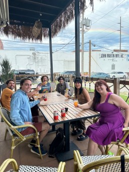 Last Friday my wonderful wife Jenny helped me celebrate my birthday in Tulsa with an approximation of beachy Californian living by summoning a small group of friends to our neighborhood tiki bar, the Saturn Room. Squinting (as I did in the photo above), I almost felt I was back at the Tiki-Ti on Sunset Boulevard. It was the best of sloshy bashes; even Oklahoma’s sky pitched in with a cocktail-colored rainbow.