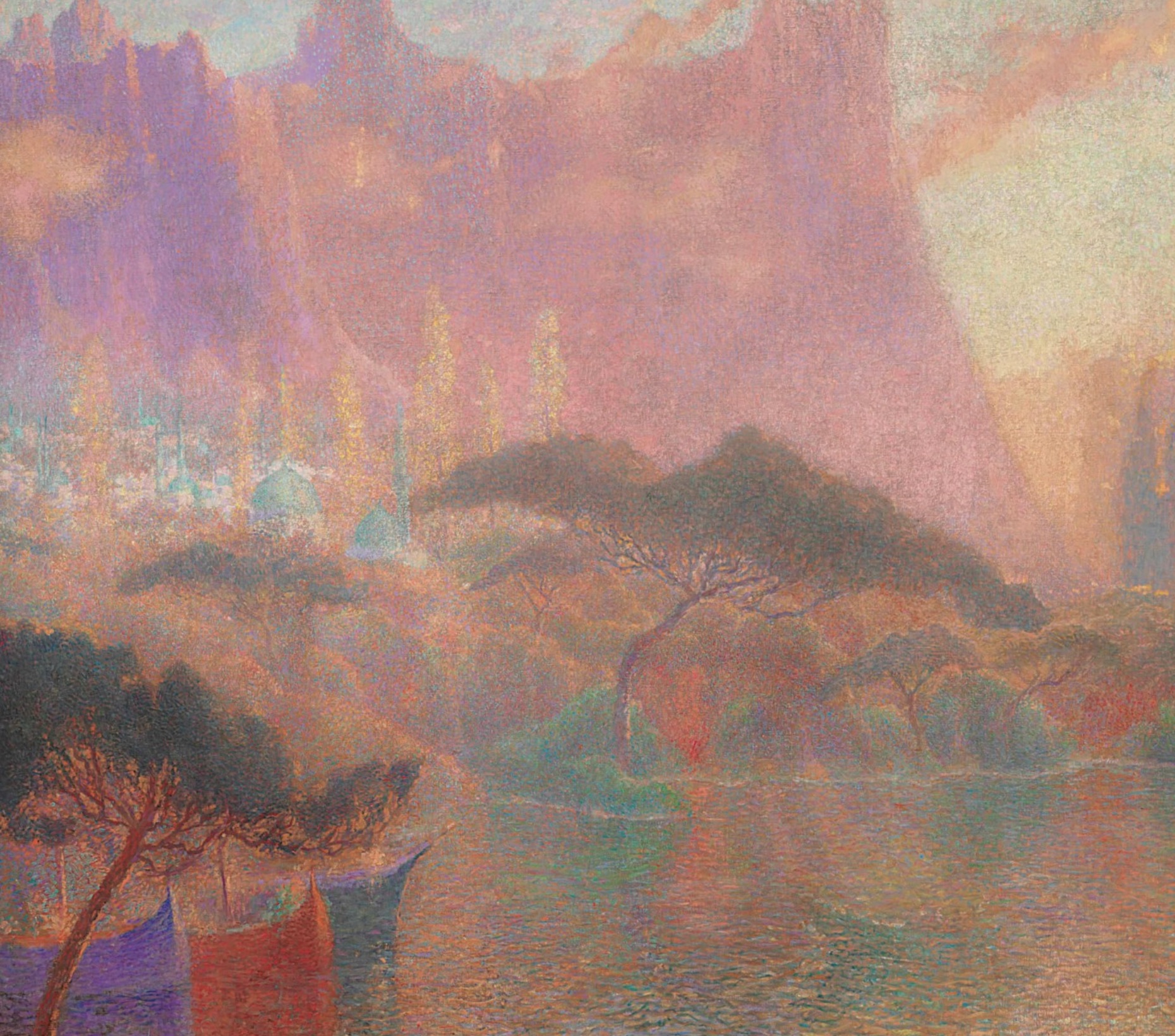 Lucien Lévy-Dhurmer (French, 1865-1953) La fantaisie orientale, signed and dated ‘L. Lévy Dhurmer 1921’ (lower left), oil on canvas, 74 x 78½ in. (187.9 x 199.3 cm.), Image Source: Christie’s