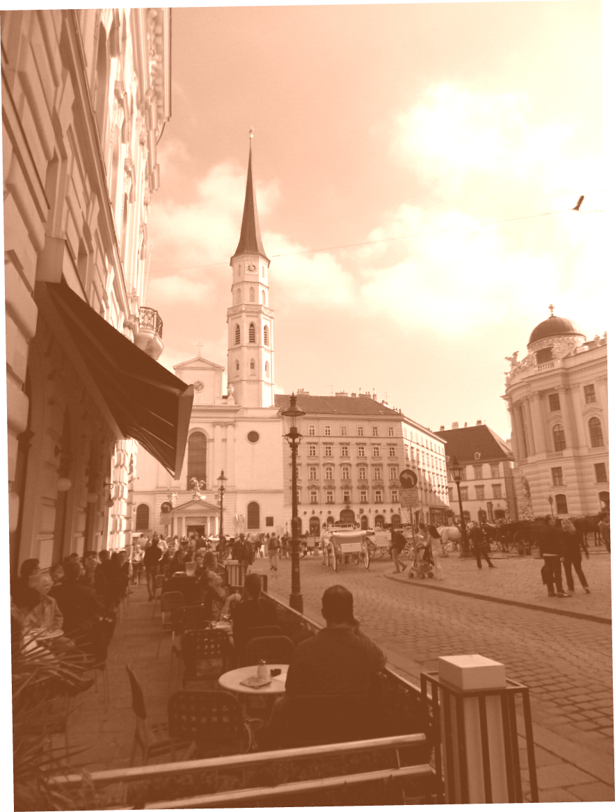 These evocative lines from Robert Graves indicate how some pots translate so very well. Yesterday, travelling around Vienna left me little time for reading -only perhaps for a few lines of poetry. I started by going North to the Landstrasse – and wandered Feclessly down the Hauptstrasse which had interesting markets. I tried using the Sun to navigate but wandered in a direction away from the Danube Canal. Easily distracted, as usual by a bookshop I found an excellent plastic sleeved grammar of German on three foldable sheets. Then found an excellent cafe where the small house torte was the best that I found in Vienna thus far. I then followed a friends advice and entered a Church founded after the second encirclement of Vienna by the Turkish forces.