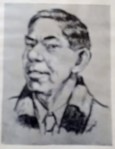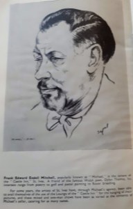 Frank Edward Endell Mitchell, appropriately portrayed with bow-tie, fashionable in the 1950s, was known as “Micheal” and was the tenant of the Castle Inn. His friendship with Dylan Thomas must have been firmly established in the bohemian atmosphere of the bar there, then opposite Lanham’s and the Scala Cinema (presently Boots). Mitchell who was the brother, I believe of the eminent sculptor, Denis Mitchell, offered the Castle lounge for the display of art works and in his spare time, he himself did pastels and was occupied in breeding Boxer dogs.