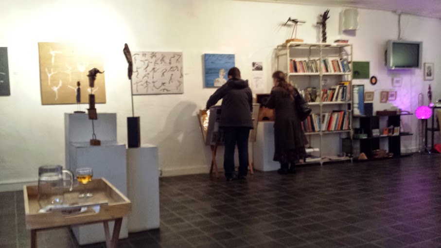 Moving around the crowded studios, there was a buzz which always seems stronger here where the art is being produced than visiting a gallery. I was particularly attracted to the work of Linda Crane -printmaking and painting but also small sculptures -including a small head which I thought reminiscent of Giacometti. The angular and elongated forms, the expressionist use of paint and the dramatic drawings were intriguing and attractive. My impression too was as though I felt a resonance both with Kokoschka and El Greco. Her work may be seen at http://www.sulisfineart.com/search/page/2?q=Linda+Crane and also at http://www.outsidein.org.uk/linda-crane where I was surprised to read of her work being in Penzance at the Redwing Gallery.