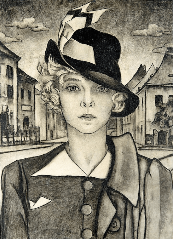 Self-portrait, ND / Charcoal on paper laid on paperboard / Private collection