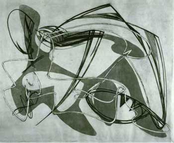 The second picture is by the renowned British print maker, Stanley William Hayter, whose magnificent work has appeared fairly recently at the Annex Galleries, http://www.myspace.com/annexgalleries/blog/433291678.Hayter, it is mentioned was, “A chemist by training, Stanley W. Hayter spent most of his life in Paris. He is often noted for his 1927 founding an experimental workshop for the graphic arts – Atelier 17-that played a central role in the 20th century revival of the print as an independent art form”. His knowledge of chemistry was obviously a great asset in his printmaking and a brief biography may be viewed at http://www.wolman-prints.com/pages/artistbiog/all/h/293.html His etching from 1934 appears to be in MOMA and further detail can be obtained from http://www.moma.org/collection/browse_results.php?criteria=O%3AAD%3AE%3A2558&page_number=3&template_id=1&sort_order=1