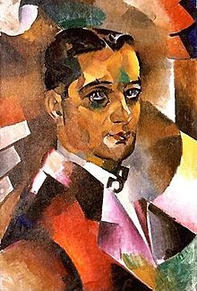 This portrait by Vladimir Baranoff-Rossine (1888–1944) was completed in St Petersburg and it shows a cubist influence, the dynamism associated with futurism as well as a colourful lyricism. The palette is already not dissimilar from Sonia Delaunay with whom he was later to co-operate in Paris in the development of Orphism. They were both Jewish emigrants from Ukraine anduntil 1914 he was a resident in the artist’s colony La Ruche. This was an old three-storey circular structure- hence its name which is French for ‘ The Beehive’- situated in the 15th Arrondissement on the Left Bank and originally designed by Gustave Eiffell as a temporary building in the decidedly colourful area called the Passage Dantzig.