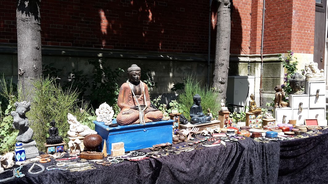Interesting too was the multi-culti feel of the area. Finding Buddhas in a row outside the Catholic Church was a thought-provoking experience. After turning the corner, there was a great trio of singers who sang in an interesting accent-one sounded Liverpudlian. When they sang, “Bei Mir bist du Schoene”, a tune with a lot of personal feeling for me, I could not resist a few mostly joyful tears. The music in the open air was beautiful and another couple of ladies sang more songs which had a Klezmer feel. It appears that there is a lovely community theatre here under threat from more capitalist development. Community cultural developments like this are so important for people’s development and expression. What a really lovely day!