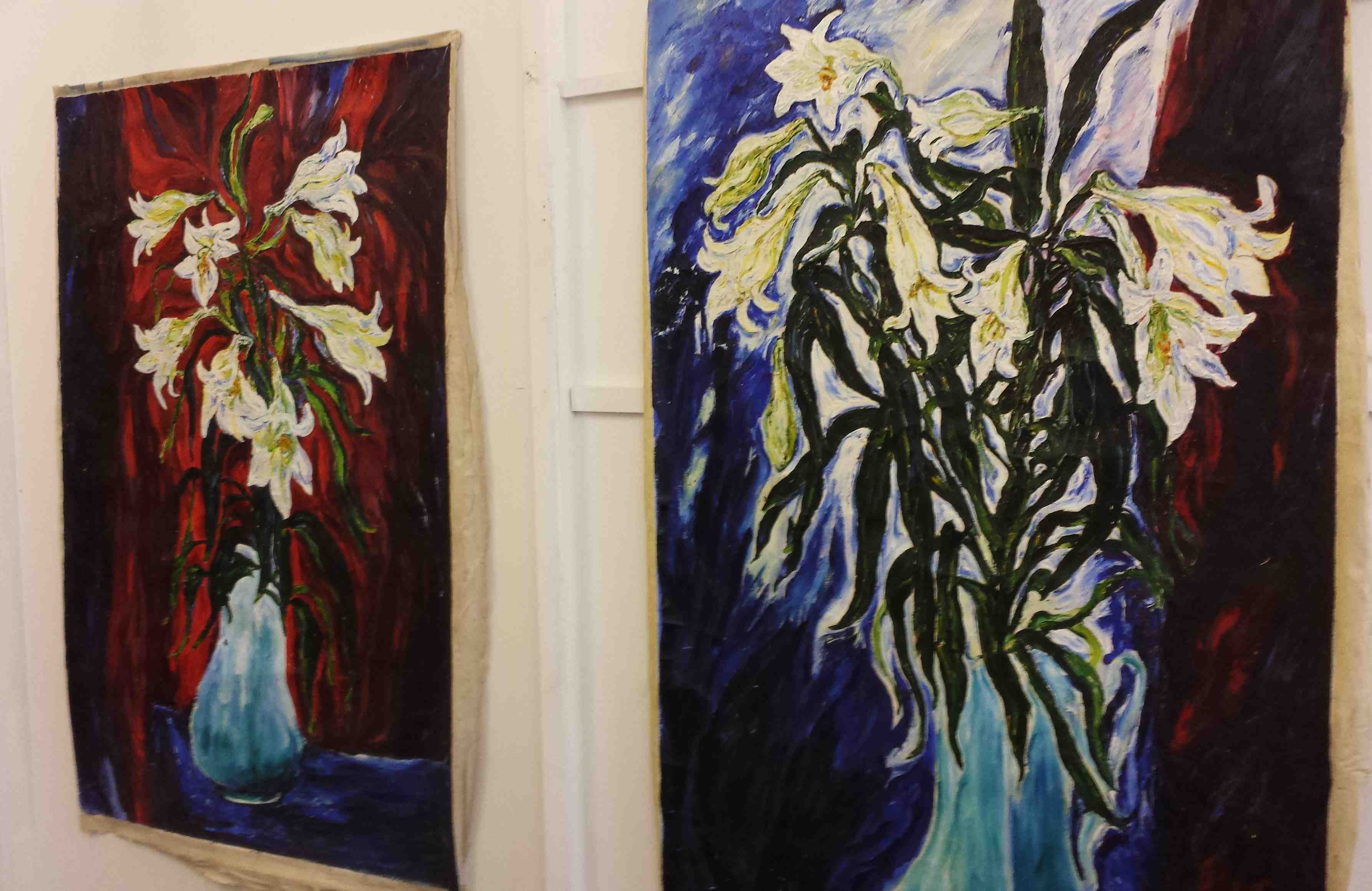 Moving around the crowded studios, there was a buzz which always seems stronger here where the art is being produced than visiting a gallery. I was particularly attracted to the work of Linda Crane -printmaking and painting but also small sculptures -including a small head which I thought reminiscent of Giacometti. The angular and elongated forms, the expressionist use of paint and the dramatic drawings were intriguing and attractive. My impression too was as though I felt a resonance both with Kokoschka and El Greco. Her work may be seen at http://www.sulisfineart.com/search/page/2?q=Linda+Crane and also at http://www.outsidein.org.uk/linda-crane where I was surprised to read of her work being in Penzance at the Redwing Gallery.