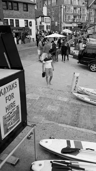 Inspired by this Youtube clip of Berlin taken in 2015 in black and white, I decided to take a look at some, mostly “street” photographs I have taken out and about in Penzance, Newlyn and St Ives this Summer.